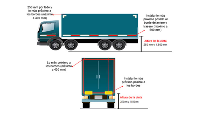 El resultado de los anteriores estudios impulsó la reglamentación del uso obligatorio de cintas reflectivas para la demarcación vehicular. En el mundo, más de 46 países cuentan con regulaciones enfocadas a este tipo de medidas en vehículos de transporte en general, como medida preventiva de seguridad. Estados Unidos acogió el uso de cintas desde el año 1993 y las Naciones Unidas en la regulación número 104 lo realizó desde el 15 de enero de 1998.
