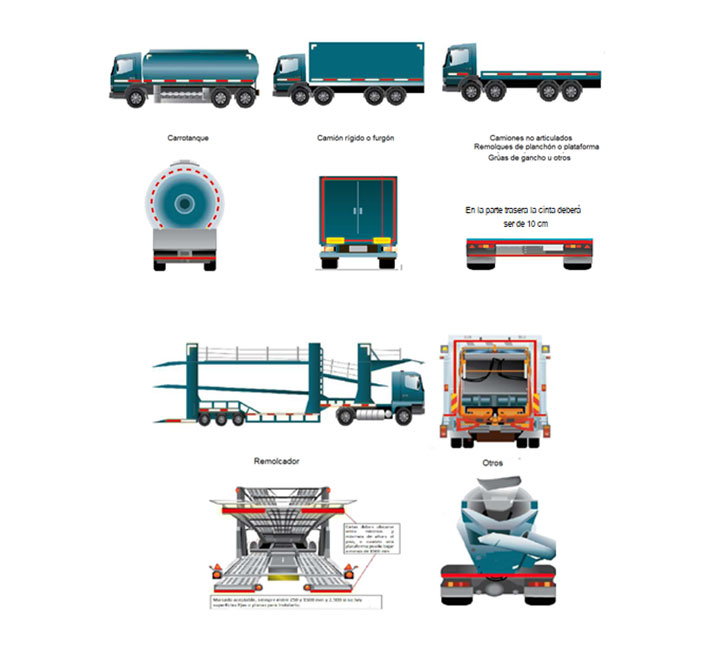 Recientemente, el Ministerio de Transporte ha expedido la Resolución 3246 que tiene como objetivo reglamentar la instalación y uso obligatorio de cintas retrorreflectivas en ciertos vehículos automotores que transporten pasajeros (buses, busetas, microbuses, camionetas tipo van y panel), carga (camiones, volquetas, tractocamiones, remolques, semiremolques y camionetas tipo furgón o estacas), estrategia que se había trazado desde el año 2010 en el Plan Nacional de Seguridad Vial de Colombia como una herramienta más para lograr reducir en un 26% las muertes y el 21% de las lesiones ocasionadas por accidentes de tránsito al año 2021.