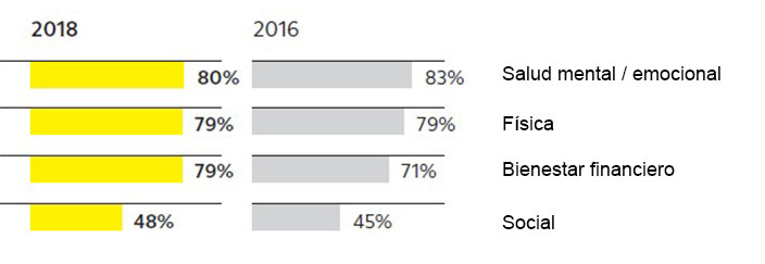 Kantar Consulting en EE.UU., desarrolló una encuesta a 2.509 trabajadores (publicada por National Safety Council) de distintas generaciones con el propósito de realizar un estudio sobre la salud mental del trabajador, donde obtuvo muchas conclusiones relevantes, entre ellas, que a medida que pasan los años, más trabajadores ven el valor de los programas de bienestar de los empleadores, tanto para ellos mismos como para la organización. Los trabajadores también indican que existe un amplio espectro de preocupación por el bienestar personal, siendo cada vez más importante en sus vidas personales, lo que genera expectativa de responsabilidad en los empleadores.