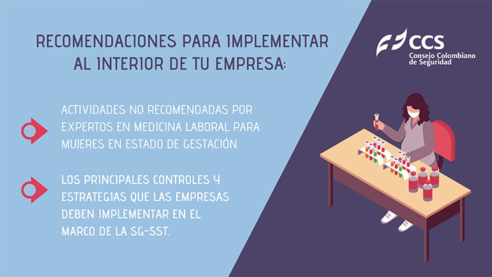 Es importante que el médico ocupacional de la organización dé revisión al CLAP con el fin de conocer las condiciones de salud de la trabajadora en estado de gestación, y así poder cruzarlas con el nivel de exposición al riesgo de la actividad que desarrollará, para así fijar controles y recomendaciones de salud (no restricciones) divulgando a diferentes partes interesadas como el jefe directo, procesos de gestión humana y encargado del SG-SST buscando el correcto cumplimiento de las recomendaciones de salud.