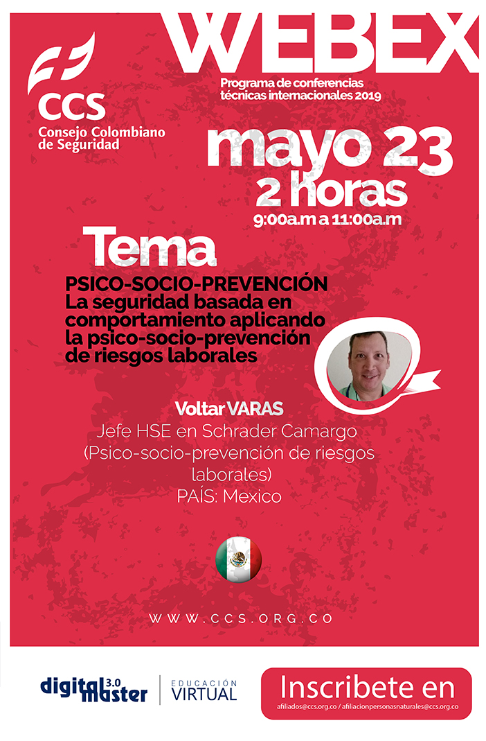El CCS te invita a participar en la conferencia internacional sobre “Psico-Socio-Prevención: la seguridad basada en comportamiento aplicando la psico-socio-prevención de riesgos laborales” con la participación del especialista mexicano Voltar Varas.