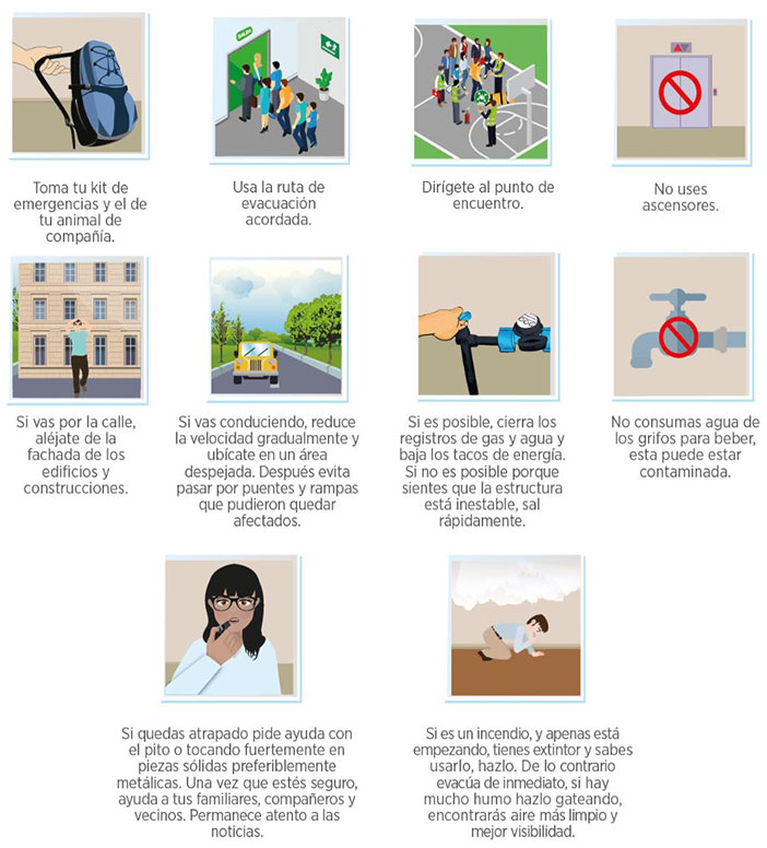 - Si estas en un edificio de más de 6 pisos, será difícil desplazarse; autoprotégete mientras logras evacuar.